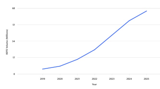 Zero-day options trading has exploded. 0DTE options — contracts that expire the same day — have become the speculative instrument of choice. They now account for as much as 65% of all S&P 500 options volume — a record. Retail traders account for 50% to 60% of 0DTE volume, according to CBOE Global Markets Inc. CBOE 0.00%↑, one of the top options exchanges.
