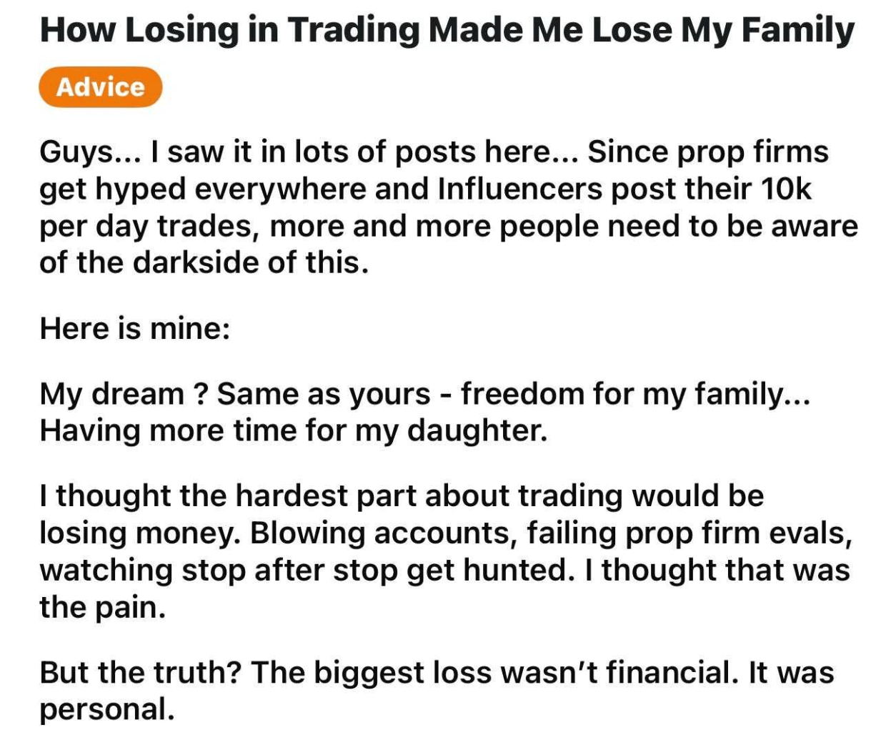 Here’s another Reddit post in the day trading subreddit that pretty much tells that tale:
