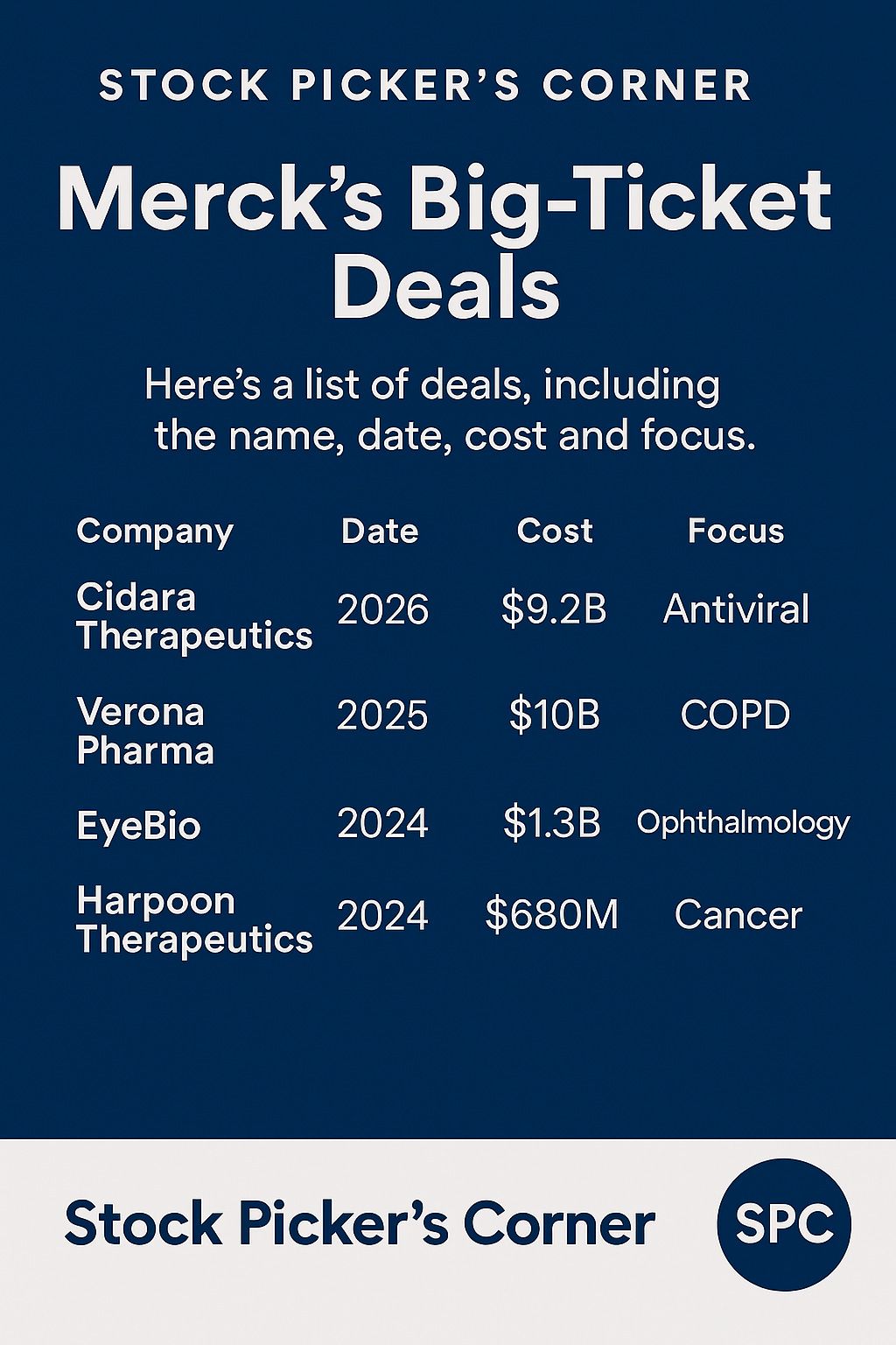 In addition to the deals outlined in the accompanying chart, Merck made such moves as: