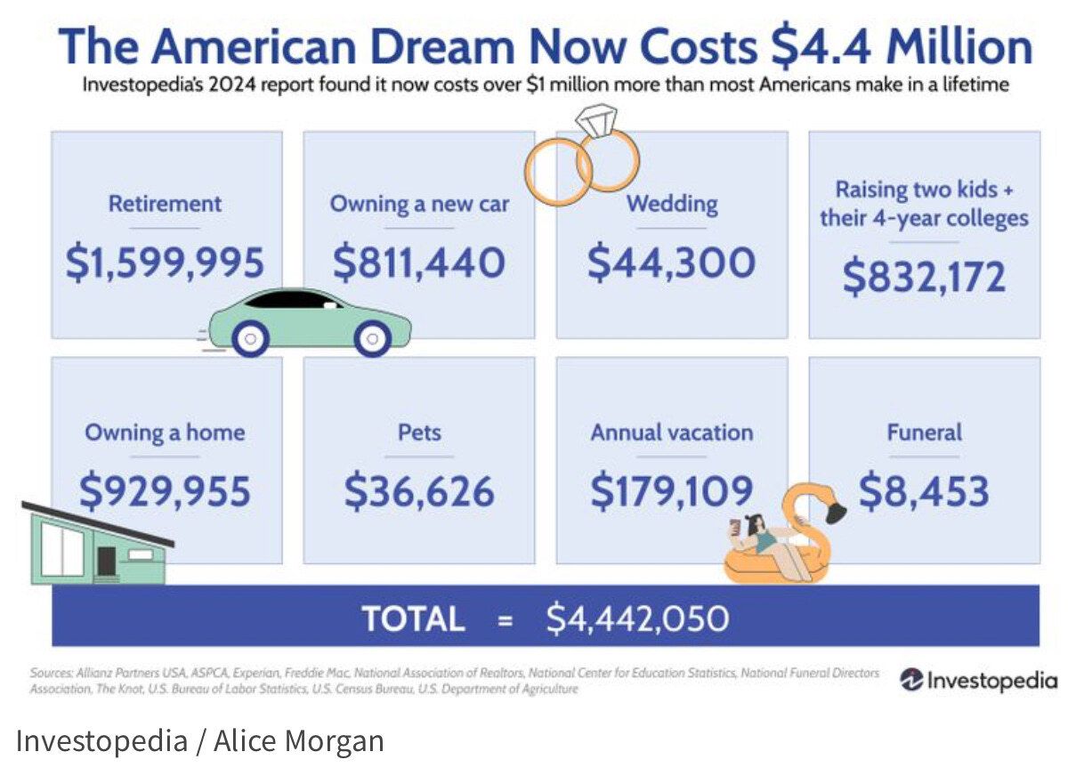 Every year, the folks over at Investopedia calculate the cost of the “American Dream:”