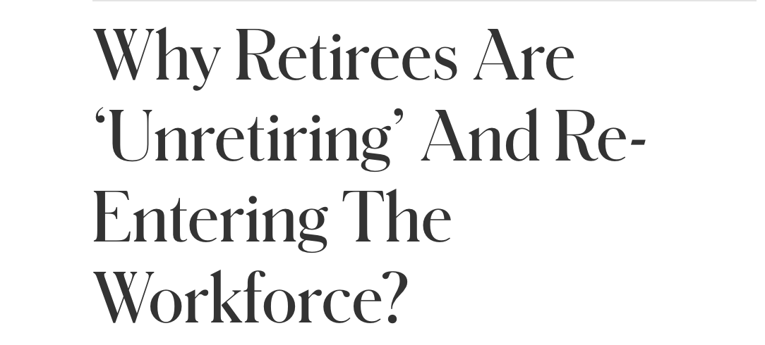 Since March 2022, 1.5 million Americans have “unretired.” And this dark Forbes headline from September poses the obvious question: