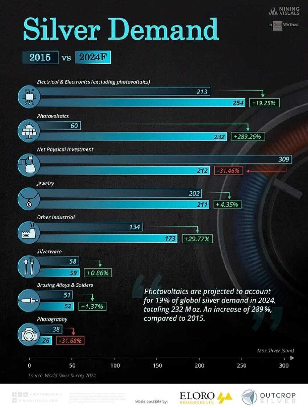 As a recap, The Silver Institute projects 2025 will be the fifth consecutive year where supply can’t keep up with demand because of the growing number of industrial uses.
