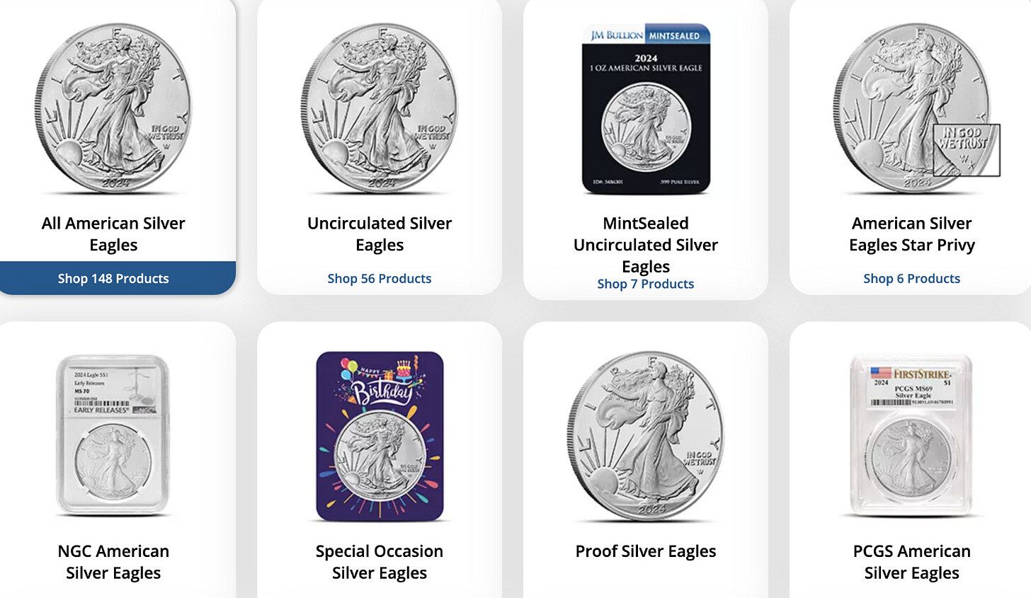 For this guide, we’ll just focus on Silver Eagles and use the precious metal dealer JM Bullion’s website because of its ease of use.